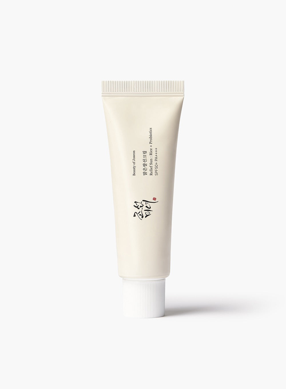 The Beauty Of Joseon Relief Sun: Rice + Probiotics SPF50+ PA++++ is a chemical sunscreen that glides smoothly onto the skin and is formulated with soothing and brightening ingredients. It has a powerful broad-spectrum SPF50+ PA++++ UV shield and is enriched with 30% rice extract and grain probiotics that deeply hydrate and nourish the skin. It is formulated with EWG-certified green ingredients and skin-soothing ingredients, making it suitable for sensitive skin. This lightweight moisturizer adheres gently to the skin and absorbs quickly without leaving a white cast.