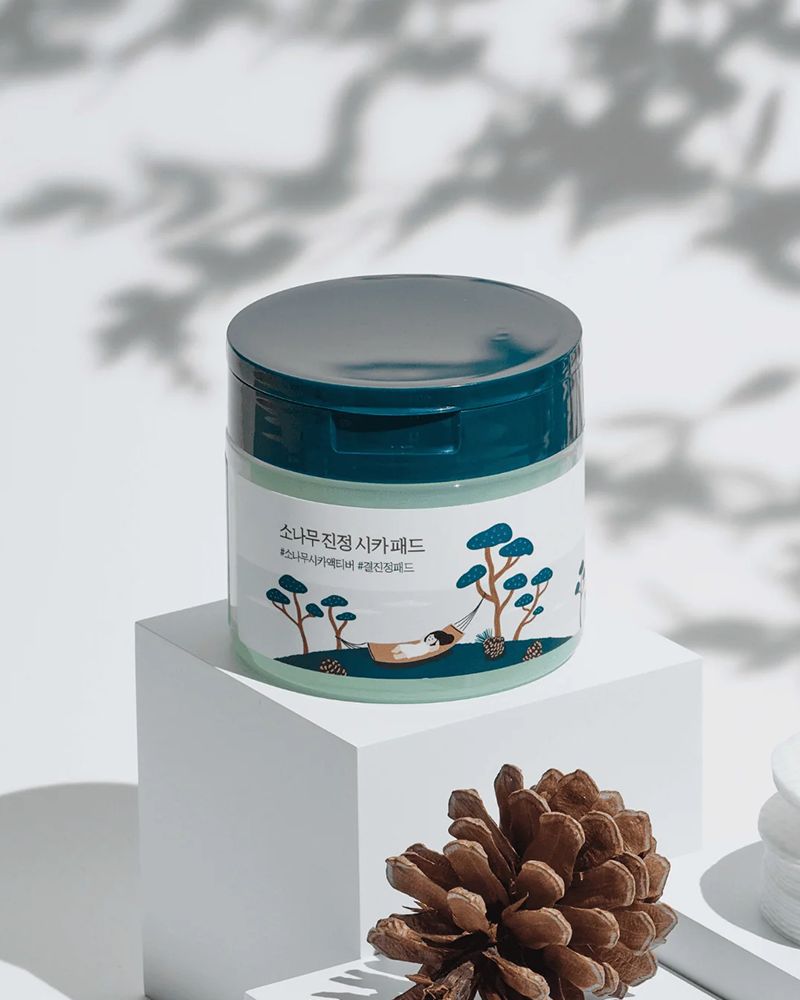 Apaise et rafraîchis ta peau à problèmes avec les Pine Calming Cica Pads ROUND LAB, infusées de 51 % de Pine Cica Activer™, un puissant mélange d'extrait de feuilles de pin et de cinq ingrédients dérivés de la Centella Asiatica. Ces compresse toniques à double face offrent une exfoliation délicate d'un côté, tandis que leur face lisse offre une hydratation profonde lorsqu'elles sont appliquées sur la peau.